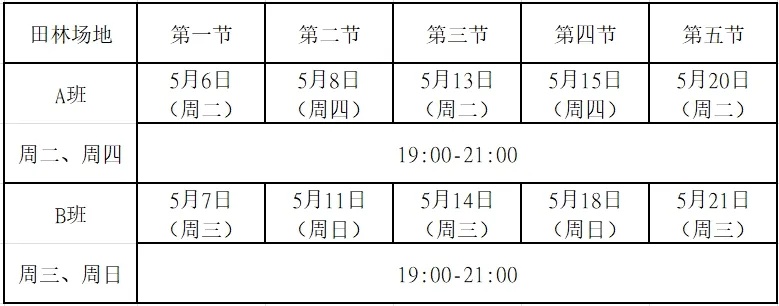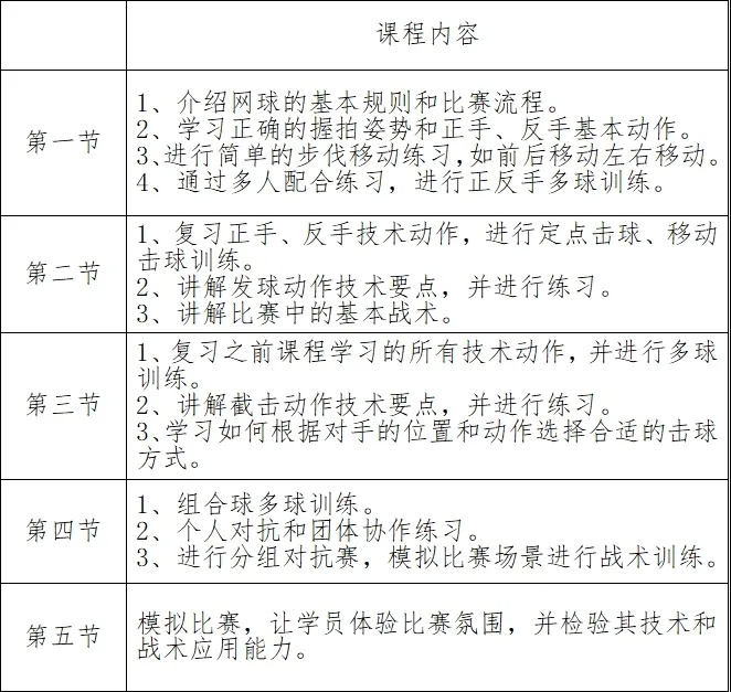 4.课程所需的体育器材由场馆提供。