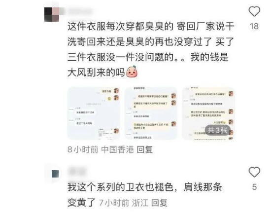 都曾反映过该品牌鞋服出现过