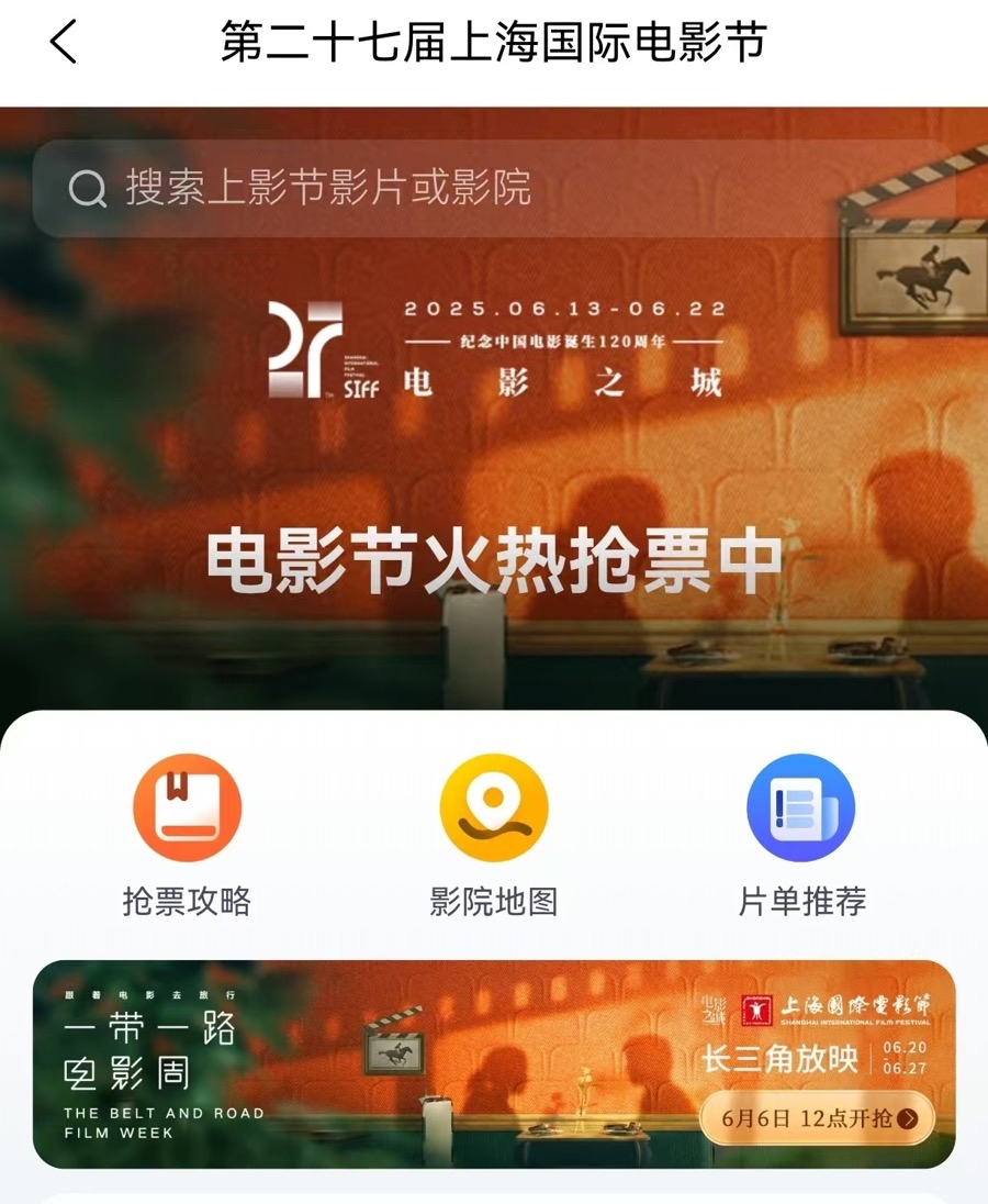 据介绍,为保证今年上影节购票顺利进行,阿里的内部测试从4月初就已启动,大部分前期准备工作在4月底完成。今年除首次支持大麦、淘票票双平台购票,还增加了鸿蒙端适配,对交互体验也做了优化,在更清晰美观的界面下,抢票体验也更加丝滑、流畅。点击进入测试链接,在第27届上海国际电影节主题页面上能看到展映影片列表,可提前添加到日程,开售后点击“抢票”,就可跳转进入选座、支付。在电影节主题页面上,与过往类似,还有抢票攻略、影院地图、片单推荐等,帮助影迷更从容地做出选片决策。