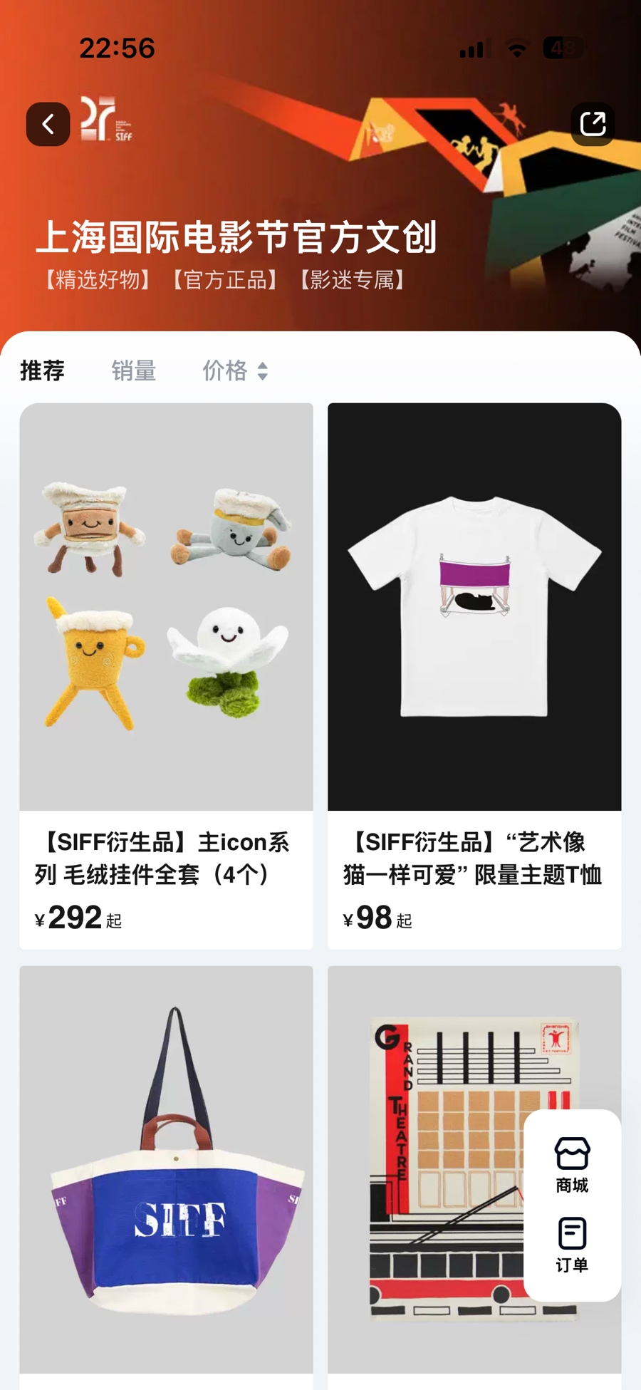 记者发现,今年购票平台不仅在支付环节增加了云闪付功能,还在页面上增加了衍生品商城入口,可以方便购买上影节周边文创。打开淘票票首页,点击“电影周边”,再点“上影节”图标,便可以看到“上海国际电影节官方文创”,不用到店,就能在线上一站购齐本届上影节的各种周边,包括毛绒挂件、主题T恤、日常背包、冰箱贴套装等均已上线。据悉,还会有很多上影节周边持续上线,将按照影迷购买时间陆续发货。