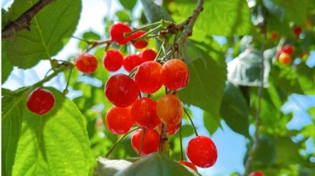 真切地观察一株樱桃已是三十多年后,在嘉兴南北湖畔的一处农家院里。一棵年轻的樱桃树矗立在庭院的门边墙角,抬手可及树冠。之所以一眼就认出它,是因为绿叶完全遮不住满树珠光宝气的樱桃,白的黄的红的,单枚的成对的三五成簇的,沾着山间的晨露,透着湖水的润泽,带着宁静内敛的美艳。昨晚在暮色里入住,我与这树擦身而过,完全没有意识到这是一株樱桃。今早鸟雀叽叽喳喳,仿佛提示我们该有一个完美的邂逅。