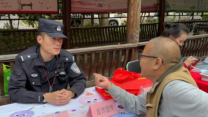 象州路派出所民警在社区重阳节活动现场开展反诈宣传