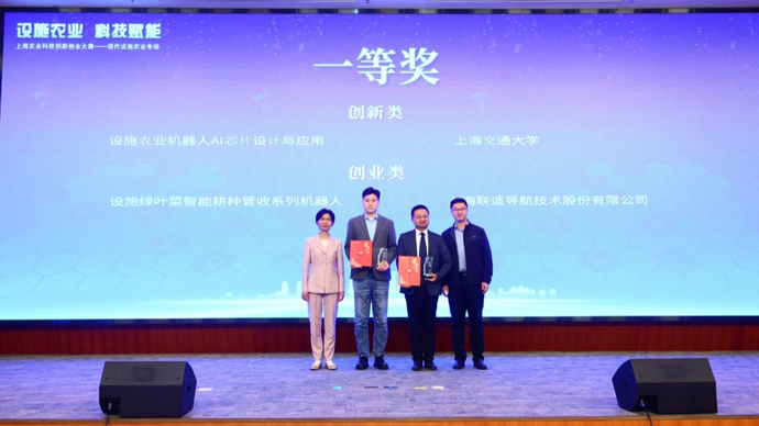 经角逐,最终设施农业机器人AI芯片设计与应用项目和设施绿叶菜智能耕种管收系列机器人项目分别获创新类、创业类一等奖。获奖项目(创新类、创业类各设一、二、三等奖及优胜奖)将纳入上海农业科技创新项目库,优先获政策扶持。