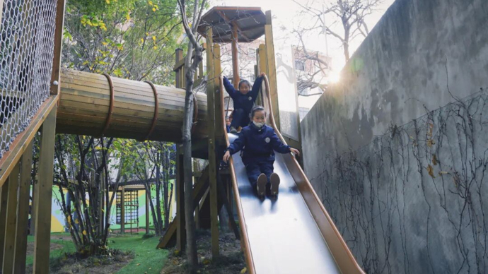 “老师,我们想爬树!”学校在满足童心与保护环境之间寻找平衡,不砍一棵树,不毁一株草,借景造物,在灌木丛中“长”出了一条“勇敢者道路”。