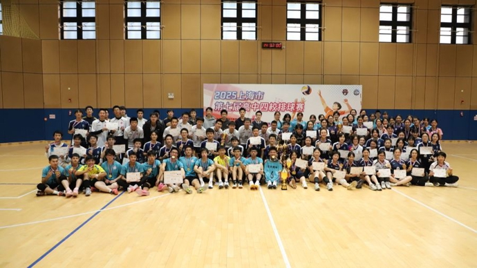上海市第七届高中四校排球赛日前在复旦大学江湾校区落幕。来自上海中学、华东师范大学第二附属中学、上海交通大学附属中学、复旦大学附属中学的男女排共八支队伍展开激烈角逐,最终,交大附中卫冕男子组冠军,复旦附中摘得女子组桂冠。