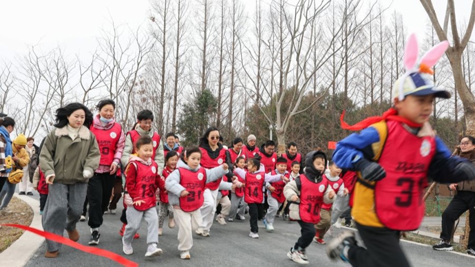 1月17日,松江区机关幼儿园30余组亲子家庭在米市渡松南郊野公园开展健康跑活动,畅享运动乐趣与自然之美。此次健康跑活动将亲子互动与亲近自然相融合,让孩子们在奔跑中锻炼体魄,领略松南郊野公园的生态美。来源:新民晚报 作者:陶磊