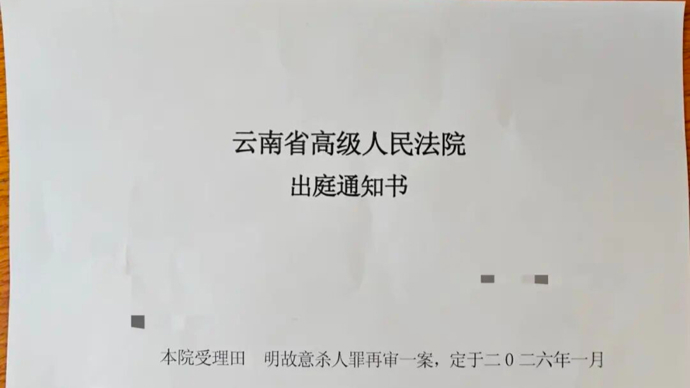 此前,玉溪市中级人民法院一审以故意杀人罪判处田某明死刑,缓期二年执行,剥夺政治权利终身。田某明不服,提出上诉。云南省高级人民法院二审裁定驳回上诉、维持原判,并核准田某明死刑,缓期二年执行,剥夺政治权利终身。
