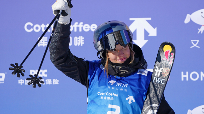 在河北张家口崇礼区举行的国际雪联自由式滑雪U型场地技巧世界杯女子组决赛中,中国选手谷爱凌夺得冠军。