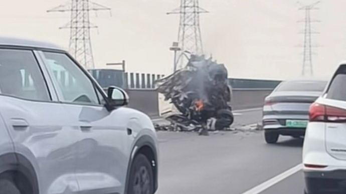 据途经现场的市民描述,当时一辆白色面包车侧翻在事发路段的左侧车道上,车头严重受损,且车头部位有火苗。后方车辆驾驶员纷纷向右变道避让。