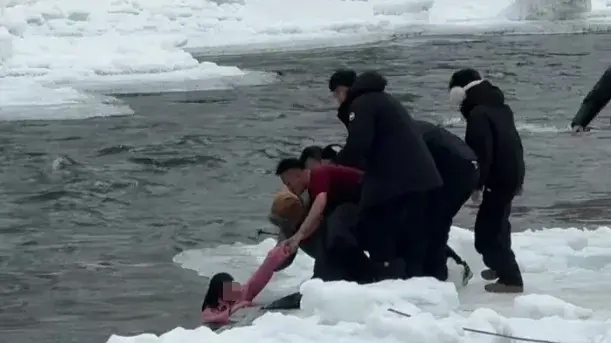 2月10日,有网友发视频称,她在新疆喀纳斯景区游玩时,发现一名小女孩不慎跌落到湍急的冰河之中,她的母亲救人心切也跳入水中,两人一度被水流冲走,万幸被附近的其他游客组队救出,场面十分惊险。