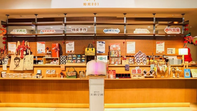 吴中路爱琴海购物中心新华文创·光的空间旗舰书店内暖意融融、书香氤氲,由市残疾人就业服务中心与上海新华发行集团携手打造的“光的空间·阳光201”残疾人手工艺品展销专区日前正式启幕,将为残疾人就业创业赋能添力。