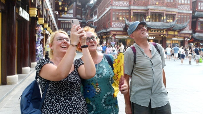 来自波兰的游客在上海豫园商城游览购物。图IC