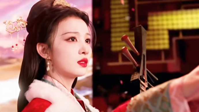昨天的春晚上,演员王楚然在节目《贺花神》中扮演"芙蓉花神"王昭君。她身着红色战国袍汉服怀抱琵琶的造型,配合雪花飘落的特效与破碎感眼神,被观众称为"神级镜头"。