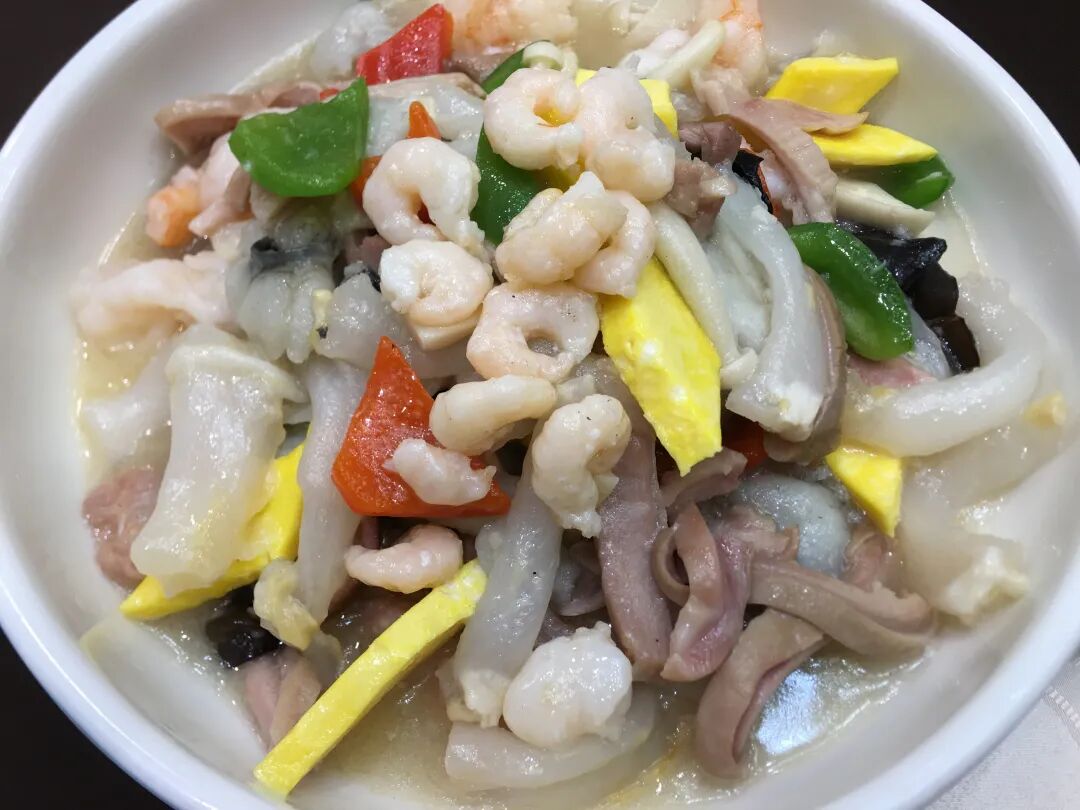 后来我在苏州美食大咖华永根注释的清代《桐桥倚棹录·菜点》一书中看到有“十丝大菜”:“荤素十样丝,食用油、盐、酒等。”华先生注释:“此为古菜。‘十丝’常用干贝丝、火腿丝、鸭脯丝、海参丝、猪腰丝、鸡脯丝、里脊丝、鳜鱼丝、冬笋丝、冬菇丝等。‘十丝’入锅用旺火煸炒,加高汤焖透,着芡盛出,装盆可用菜心垫底衬色。‘十丝’亦可用其他荤素料,根据季节做些调整。”