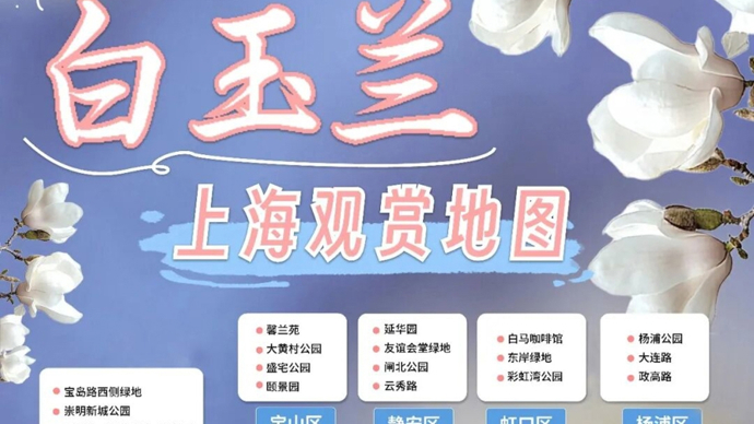 为了增强市民对市花白玉兰的感受度,市绿化部门特地为大家准备了一份《上海白玉兰观赏地图》,包含了73个道路、公园绿地、绿道观赏点位和2个古树及古树后续资源观赏点位。