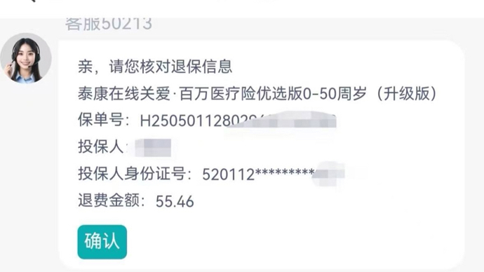 “只要你发现了,去沟通要求退保,对方的态度还是可以的,退费比例跟你的坚决程度成正比。”成功全额退费的胡先生表示,自己发现被莫名投保扣费后很气愤,立刻讨要说法,客服马上道歉,然后说可以办理退费,但要按天数扣除相关费用。“我马上反驳,这个保险根本不是我投的,并要求提供我的亲笔签字,对方随即就说可以特别申请为我全额退费。”胡先生直言,感觉这样的套路就是“能坑一个是一个”,只要没发现就一直扣。