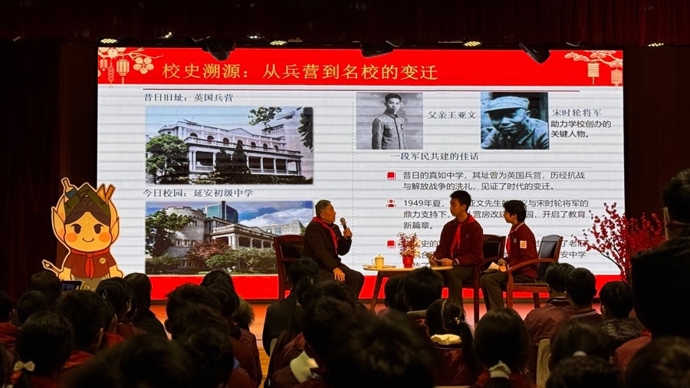 今年,延安中学将迎来80周年校庆。延安初级中学今天的“开学第一课”邀请了一位特殊的讲述者——上海解放后学校首任校长王亚文的儿子王基。他为孩子们揭开了一段尘封的校史,讲述一位“沉默的英雄”如何从硝烟战场走向三尺讲台,也带着孩子们重温那段“沉默的荣耀”的故事。