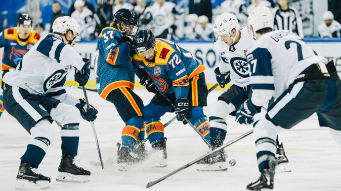 尽管球队队长、2022年北京冬奥会中国冰球队明星球员福将因伤缺席,但上海龙队在家乡父老面前打出了顽强斗志。比赛进行到45分钟时,福将的弟弟福帅抢点破门,将比分扳平。这一进球创造了历史——从“中国冰球队冬奥首球”到“上海龙队KHL联赛首球”,再到“上海龙队在上海主场首球”,福帅完成了三重历史的书写。