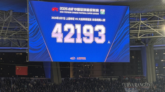 另一场观众突破四万的比赛,发生在赛季的起点。3月6日晚,2026赛季中超联赛的开幕式和揭幕战在成都蓉城的主场五粮液文化体育中心专业足球场举行。这场具有历史意义的比赛(中超揭幕战时隔18年重回成都)吸引了41219名观众,最终成都队以5比1完成一场酣畅淋漓的大逆转。终场哨响后,“凤凰山”再度响起了成都球迷熟悉的大合唱。41219个座位几乎座无虚席的景象,再次稳固了成都作为中超“金牌球市”的标杆地位。