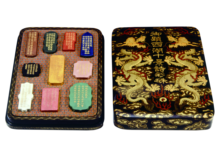 清 汪节庵制西湖十景诗彩硃墨