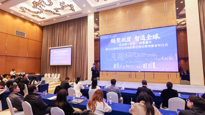 3月19日,“链聚航贸,智通全球”——“区块链+航贸”场景集市在市北“数通链谷”举行,现场发布的2025静安区区块链创新应用“十佳场景”横跨数字经济、普惠金融与数字治理三大领域,为区块链技术规模化、规范化、长效化应用提供了先行经验。