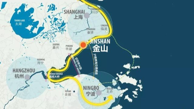 它计划建在现有杭州湾大桥的东边,离岸大约20-40公里的海面上,路线几乎是笔直的,一头连着上海金山,一头连着宁波慈溪。