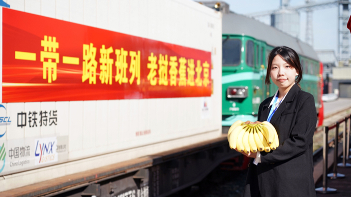 2024年10月20日,首趟中老铁路(万象—昆明—北京·平谷)国际冷链专列暨“京滇·澜湄线”运载着产自老挝的390吨优质香蕉,由磨憨口岸入境,通过全程冷链运输抵达北京。新华社 发