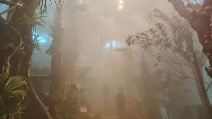 穿梭于焕新后的“雨林秘境”,还是做一次森林科学家的好机会。展区以西双版纳热带雨林为蓝本打造微缩雨林场景,还原雨林昼夜、晴雨交替的真实环境变化,同时复刻雨林科考场景,布设林冠小气候传感器、地下水位测量器等专业设备,打造以版纳补蚌生态站为原型的“雨林科考站”,让观众直观学习科考方法、了解雨林生态运作规律。在这里,仿生象鼻机器人、SNAG无人机、光子晶体材料等仿生科研成果,尽显自然智慧对科技创新的启发。例如,每天计划上演四场的雨林大秀,还原了昼夜、晴雨交替的光影与环境变化及雨后的丁达尔现象。