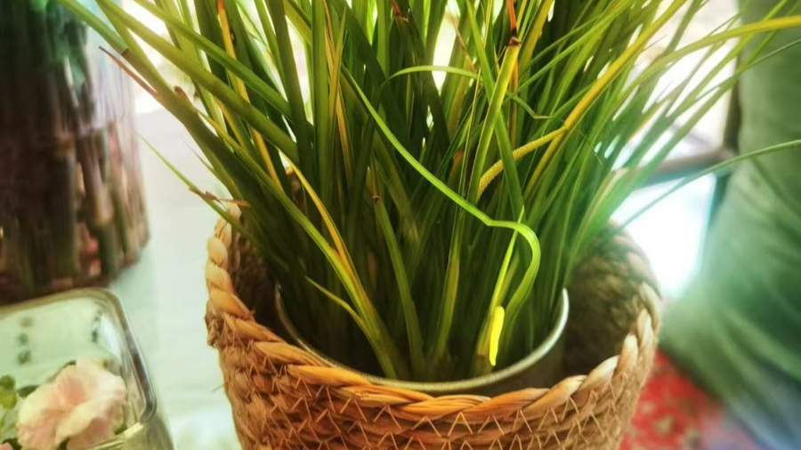 寒冬尽,春又来。二月,菖蒲最先觉醒。在修整金边菖蒲时,将其中一株移种水培于陶罐中,绿意置于案头,每每伏案读书写作陪伴左右。常道:“园中无石则不秀,室内无蒲则不雅。”见其在晨光斜照时泛出丝绒般的金光,在月光辉映下,带出一缕清冽微辛的幽光,气韵沉静,常获雅韵和灵感。它将幽情、翠色与芳香弥散于空间,像山涧清流与薄雾,是如唐张籍“石上生菖蒲,一寸十二节”的味道记忆。
