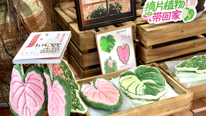 无需付出精力就能获得绿植陪伴,毛绒盆栽的情绪价值正是其受欢迎的原因。“我是‘植物杀手’,养个仙人掌都活不了。这种盆栽不用浇水施肥却能永远绽放,太适合我了!”正在挑选心仪“植物”的市民张小姐笑着说。一位专程前来打卡的设计专业学生则说:“这些产品既有专业植物学背景,又充满设计感。我特别喜欢真植物系列和药香珠手串系列。”