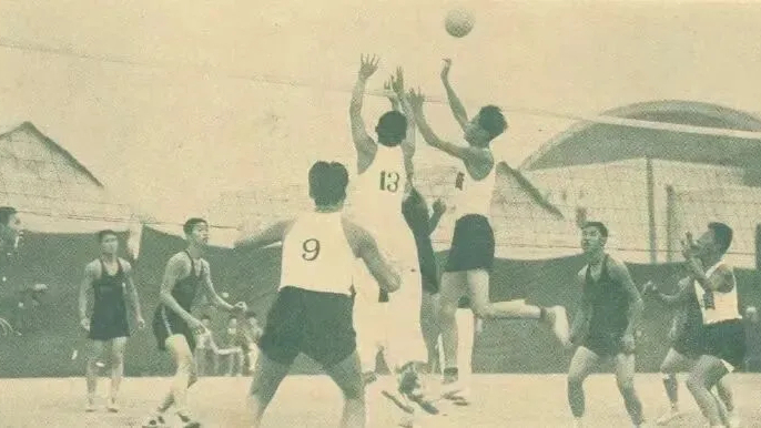 1935年旧中国第六届全运会排球赛上海队对阵青岛队