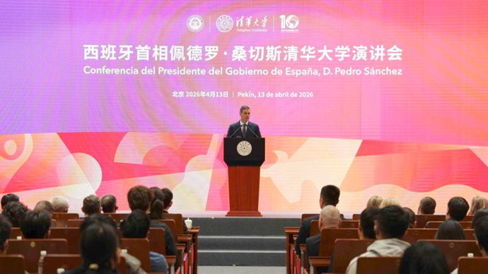 西班牙首相桑切斯在清华大学发表演讲。图源:新华社