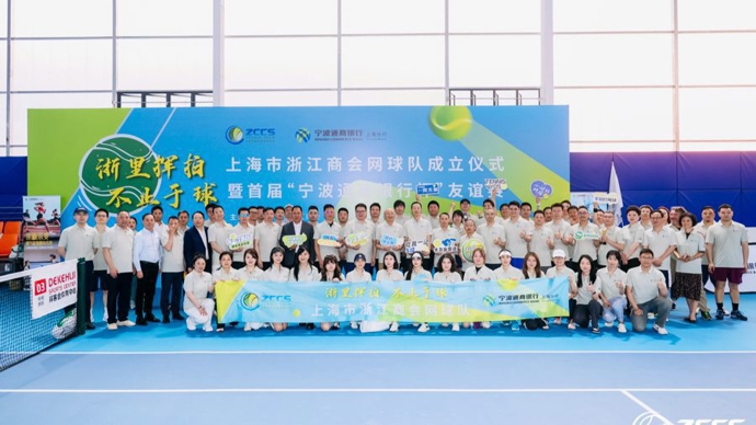 4月19日,位于闵行颛桥的得客会体育中心内热闹非凡,这座拥有全上海最多网球场地(25片室内球场)的体育中心,迎来了一场仪式,在沪的浙江商会成员将在这里组建一支业余网球队——上海浙商队,同时开启首届商会网球友谊赛的序幕。在成立仪式上,上海市浙江商会轮值会长叶小平为队伍授旗,上海市网球协会副会长李耀出席。