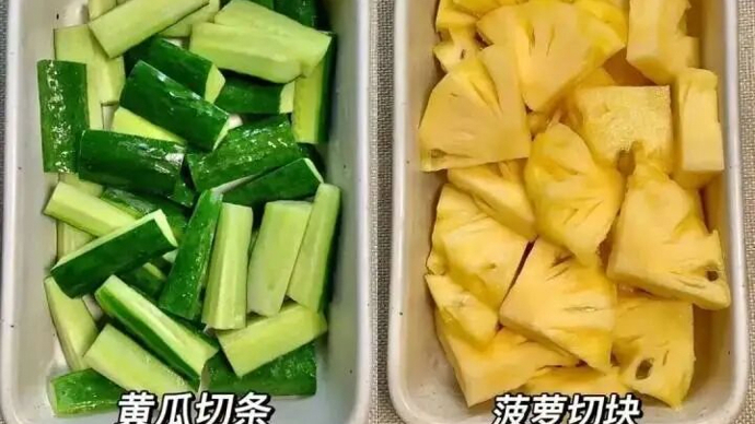 最近,一道听起来有些新奇的凉菜——菠萝拌黄瓜,在社交媒体上迅速走红。不少博主称其为“低卡清爽减肥晚餐天花板”,并纷纷晒出自己的制作视频:黄瓜切块,菠萝切块用盐水浸泡,加一点糖和白醋拌匀即可食用。